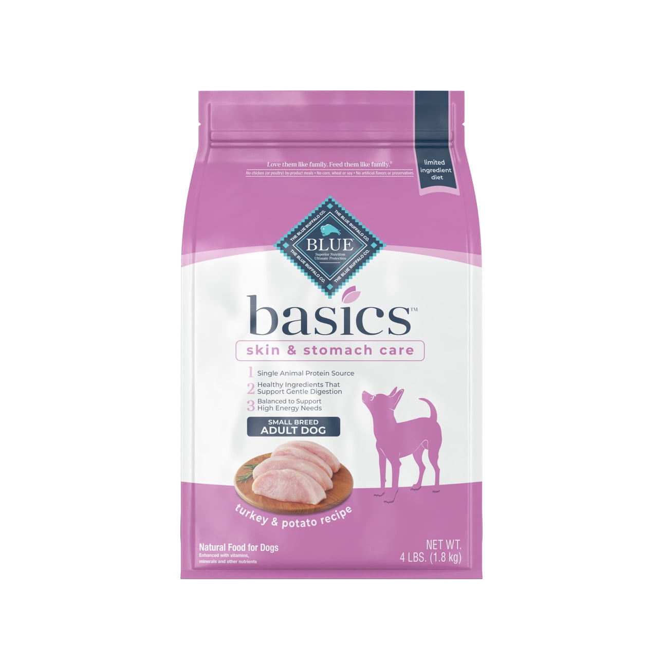 Blue Buffalo Basics Skin Stomach Care Small Breed Turkey And Potato Dry Dog Food For Adult Dogs Whole Grain 4 Lb Bag Walmart Com